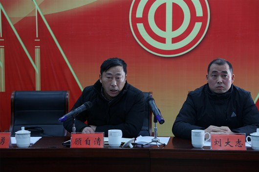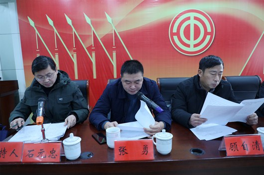 公司執(zhí)行董事、黨總支書(shū)記張勇同志宣讀區(qū)總工會(huì)批文