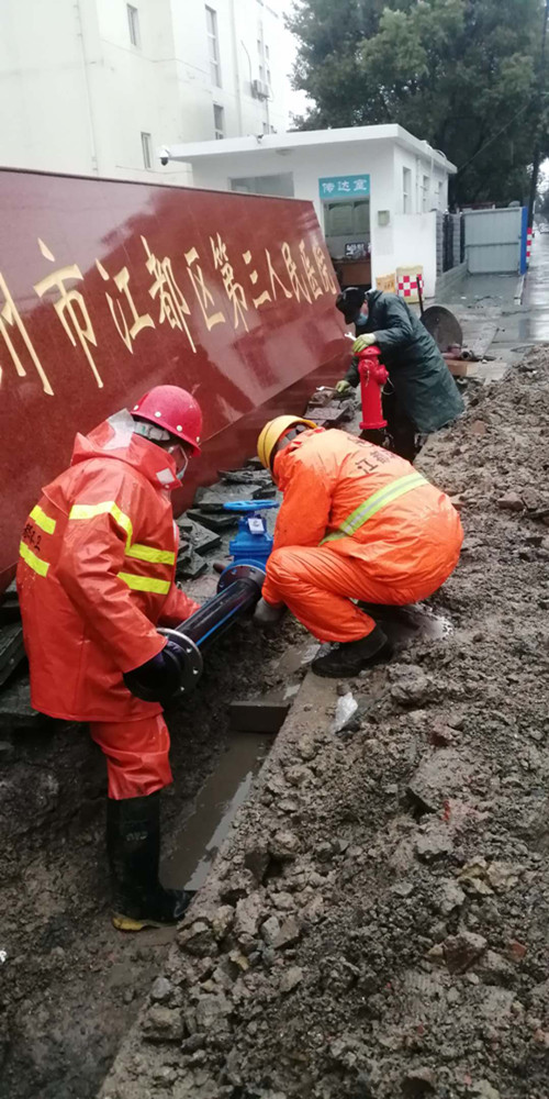 新冠肺炎疫情在全國范圍內(nèi)爆發(fā)以來,我區(qū)擴建第三人民醫(yī)院作為江都區(qū)的“火神山”醫(yī)院,隨著病房的增多,用水需求也相應增大,公司下屬揚州龍泉建設工程有限公司按照上級相關(guān)要求,配合醫(yī)院的建設進度,對原有的自來水供水管道進行擴建改造,切實保障醫(yī)療用水需求。