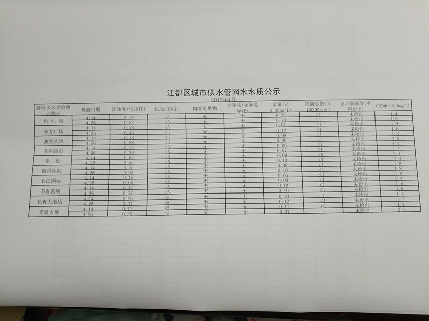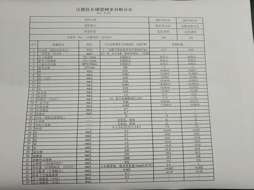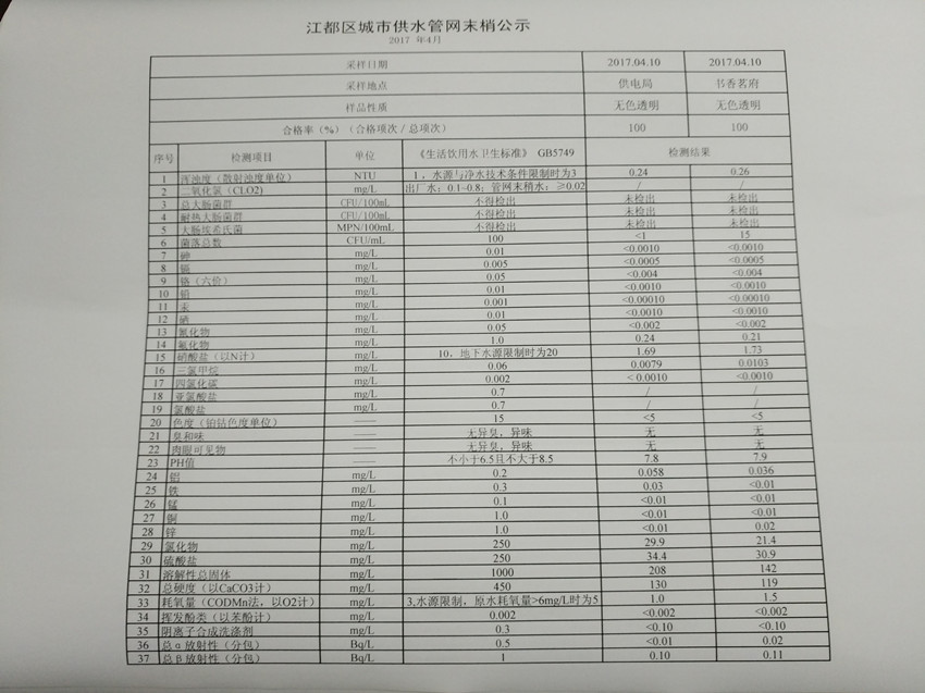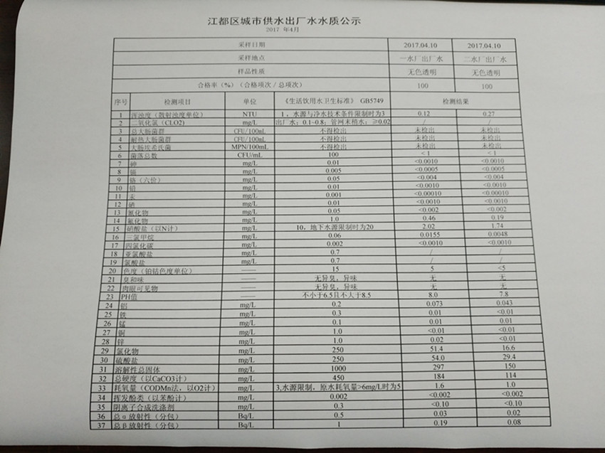 水質(zhì)公示