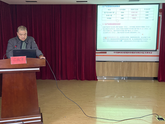 在本次大會匯報交流環(huán)節(jié),分別聽取了計劃財務(wù)部、運(yùn)營技術(shù)部、黨群工作部、自來水公司、惠民區(qū)域供水公司、龍泉建設(shè)工程公司、龍川污水處理公司等七個部門單位2021年工作總結(jié)報告。各部門、子公司負(fù)責(zé)人分別圍繞2021年全年生產(chǎn)經(jīng)營指標(biāo)、重點(diǎn)工作完成情況、存在的主要問題、解決對策以及2022年工作計劃作了交流匯報。