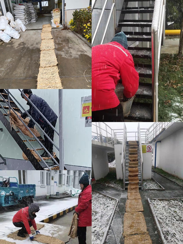 為提前做好雨雪冰凍天氣防范應對工作,避免雨雪冰凍天氣對污水廠安全穩定生產運行帶來的不利影響和損失,我公司嚴格按照上級各有關指示精神,積極落實相關應對工作。各下屬污水廠高度重視,積極應對并迅速啟動雨雪冰凍天氣應急預案相關工作,各污水廠負責人積極宣傳相關文件精神,迅速組織全員加入應急隊伍中,提高全員防凍保溫及安全作業意識,強調全體運行工在工作中要加強巡視,發現問題及時報告廠區負責人,最大程度的減少冰凍雨雪天氣給廠區生產設備、運行及員工身體健康等方面帶來的不利影響。各廠負責人帶頭加入積雪清掃隊伍中,并在廠區重要工作部位鋪設草墊,做好防滑工作,各廠負責人提醒廠區值班人員在做好日常生產工作的同時,盡量減少登池作業頻次,全面保障人身安全,確保各廠區安全生產運作。