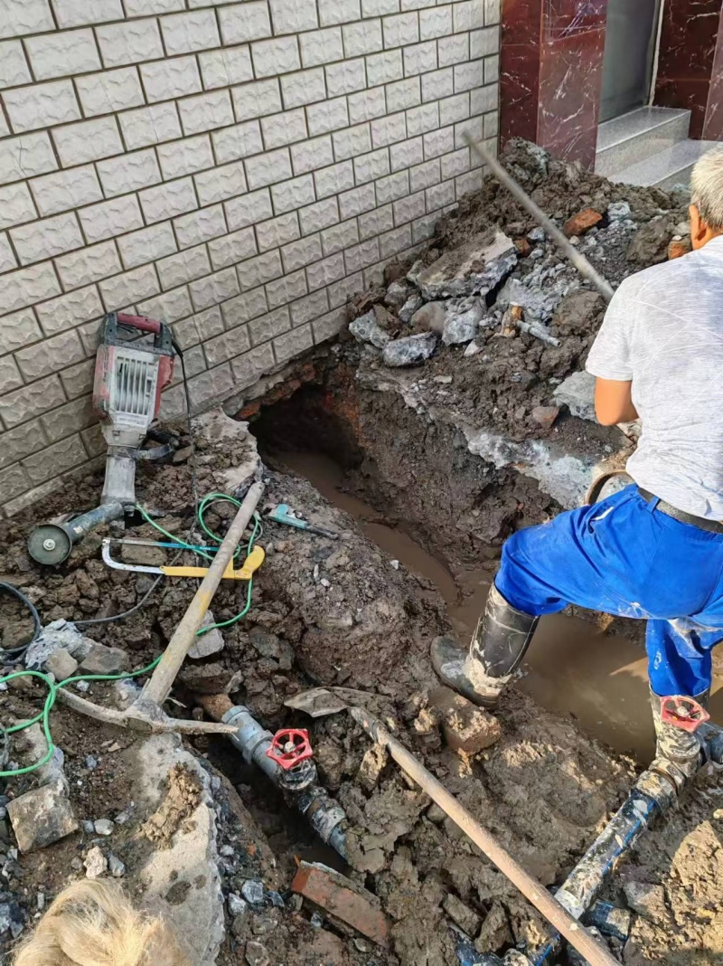 近期玉帶公寓用戶反映21幢、22幢高層無水可用,接到用戶報修后,自來水公司管網(wǎng)辦副主任王曉靜同志與龍泉建設(shè)工程公司維修部主任李兆軍同志帶領(lǐng)維修人員,第一時間趕到現(xiàn)場,為居民解決用水問題,經(jīng)現(xiàn)場查勘發(fā)現(xiàn):玉帶公寓(前身為公檢法大院)內(nèi)部供水管道多年前安裝,自來水管道布局較為復(fù)雜,漏點(diǎn)又在房屋內(nèi)部,維修難度較大。維修人員利用尋管儀巡查,在巡查過程中因干擾太多無法確定漏點(diǎn)上游管道,后經(jīng)管網(wǎng)辦與龍泉公司工作人員現(xiàn)場拿方案,最終決定采取在墻體外側(cè)開挖,切除管道的辦法對漏點(diǎn)進(jìn)行維修。