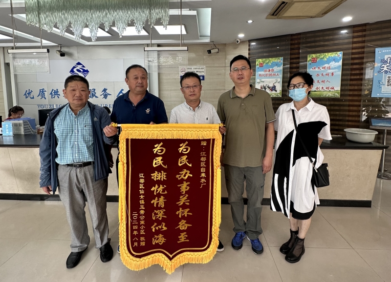 8月26日,揚(yáng)州市江都區(qū)自來水有限公司收到一面繡有“為民辦事關(guān)懷備至,為民排憂情深似海”的錦旗。“沒想到自來水管道這么快就修好了,真的是感謝你們,為你們高效、優(yōu)質(zhì)、熱情的服務(wù)點(diǎn)贊!”江都區(qū)仙女鎮(zhèn)玉帶公寓小區(qū)的居民激動地說道。